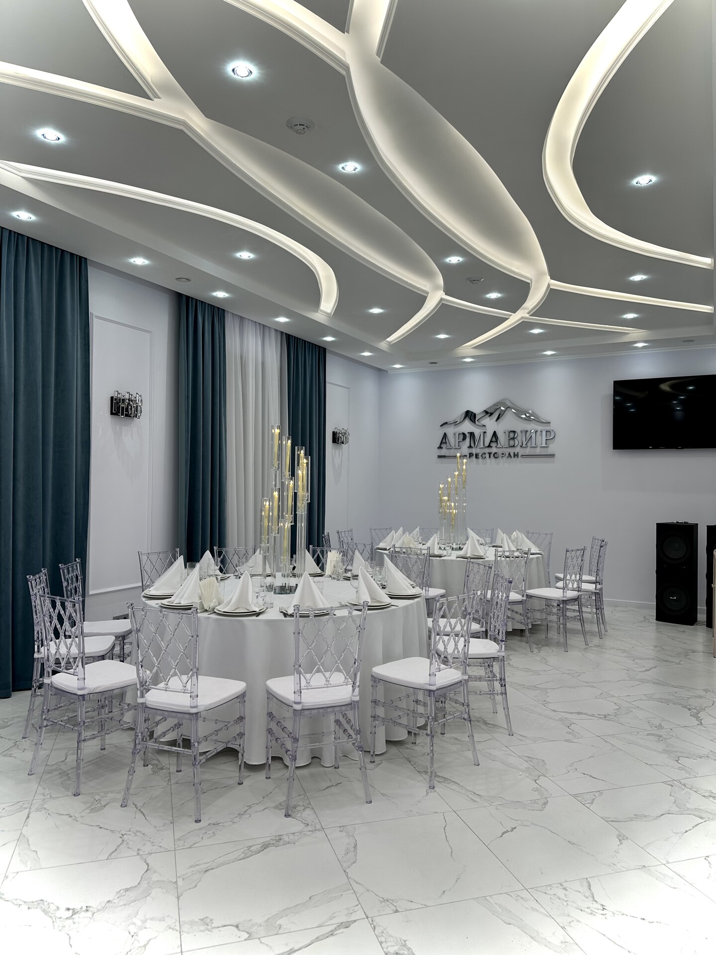 Наш ресторан встречает гостей живой музыкой, красивыми залами и приветливым обслуживанием.